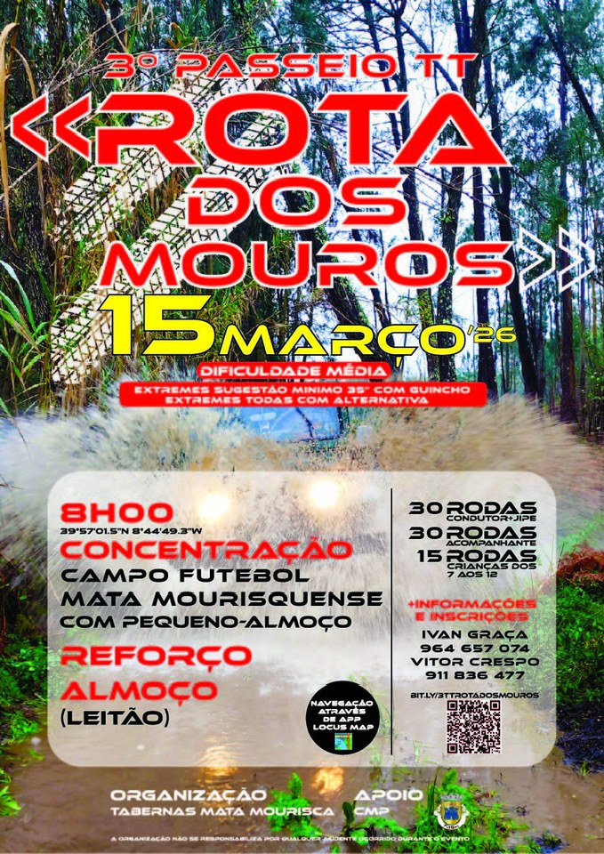 As Tabernas da Mata Mourisca, com o apoio da Câmara Municipal de Pombal, têm o prazer de convidar todos os amantes do todo-o-terreno para a terceira edição da já tradicional Rota dos Moutos!